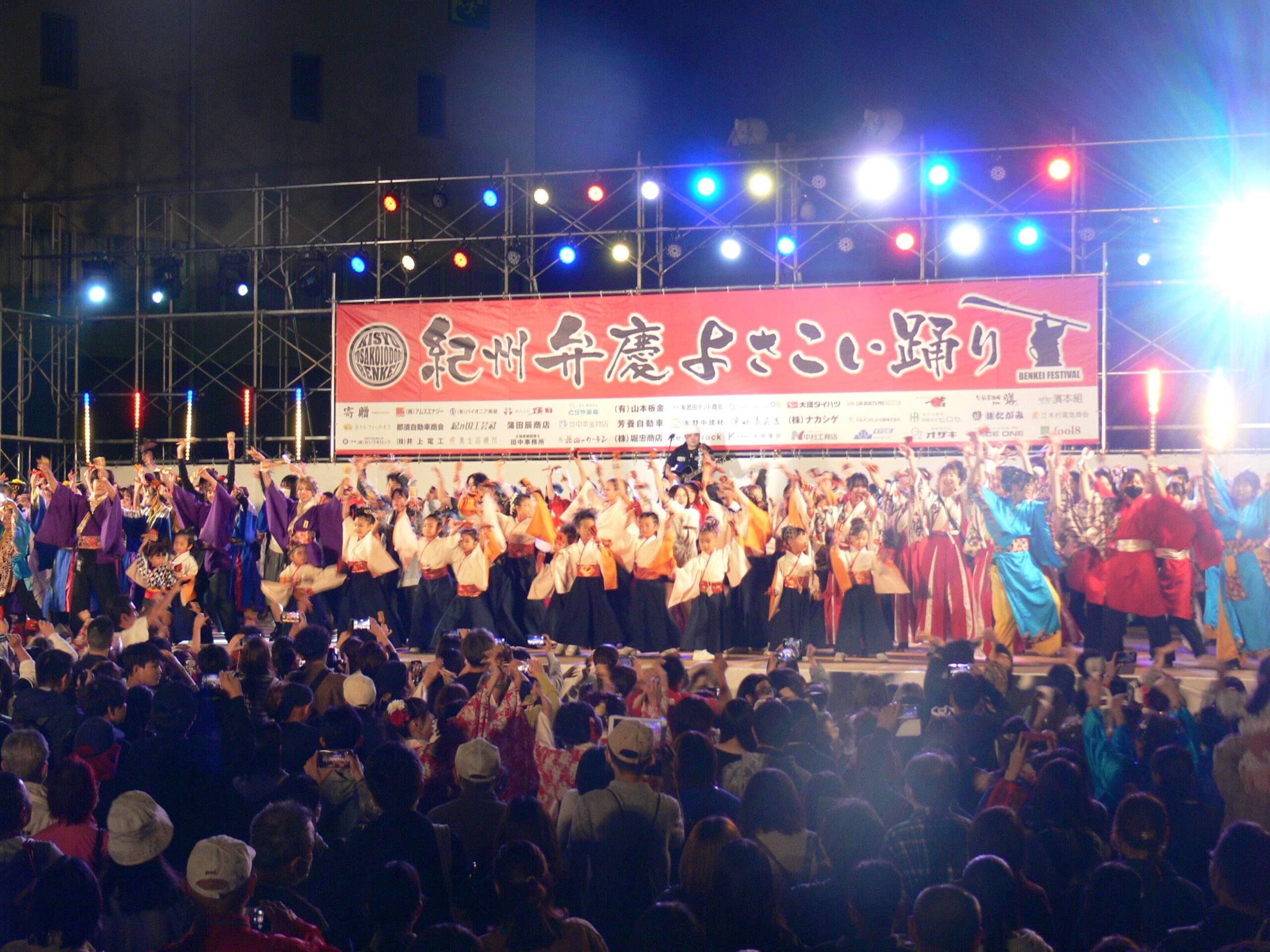 弁慶まつりでのイベント「紀州弁慶よさこい踊り」は、田辺市扇ヶ浜をメイン会場に繰り広げられるよさこい踊りコンテストです。毎年、県内外から多くのよさこいチームが参加し、会場での演舞だけでなく、大通りにて参加チームのパレードも行われます。 弁慶まつりは、昭和62年の第1回以来、『市民まつり』としてすっかり定着し、地域活性化に貢献してきました。近年は内容が多様化し、盛りだくさんのイベントは紀南最大と言われています。